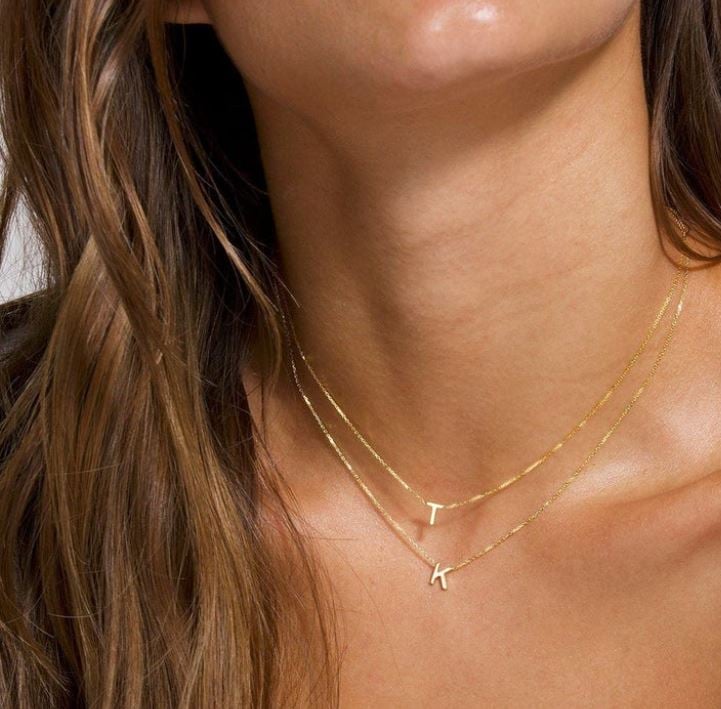 Pretty, dainty 16" yellow gold necklace with your choice of one initial.